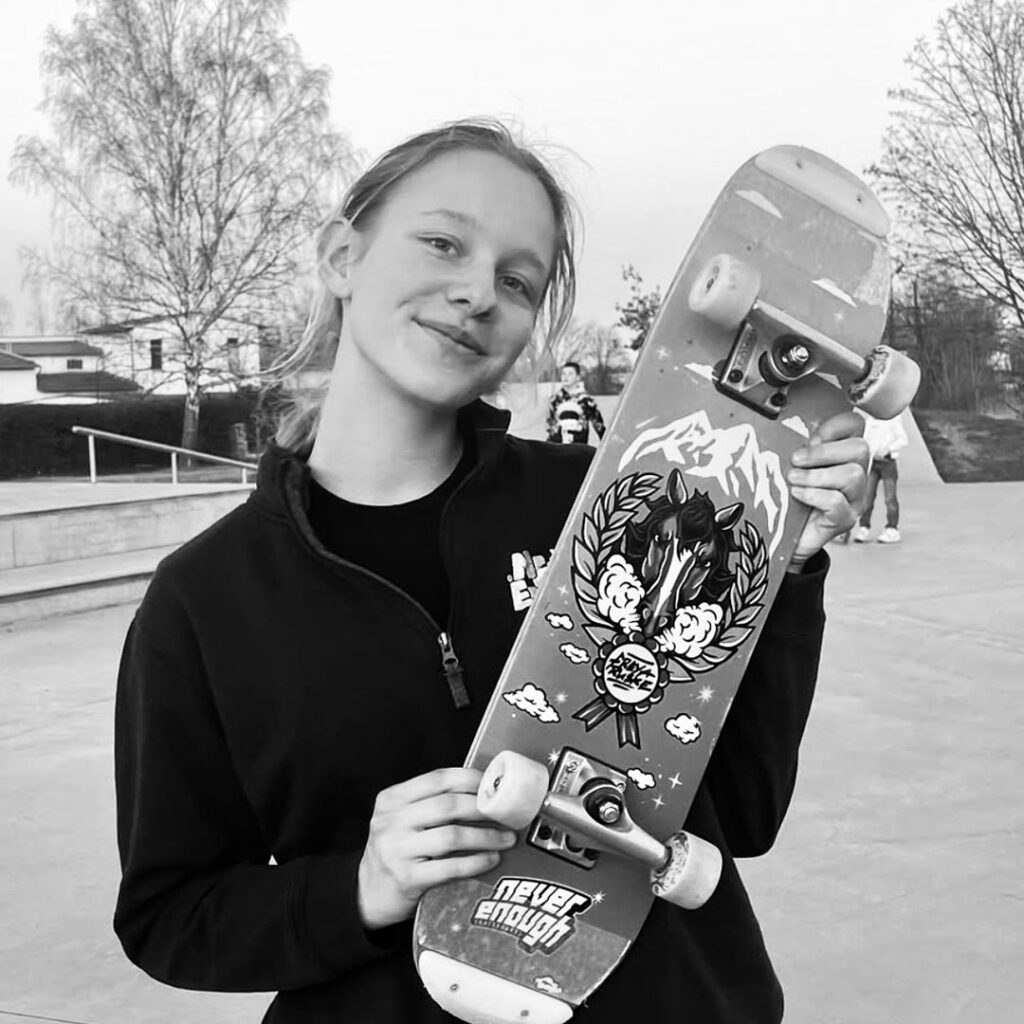 Freya ist eine junge Freestyle-Skaterin, die seit April 2022 mit großer Hingabe auf dem Board steht. Mit gerade einmal 16 Jahren hat sie sich durch kontinuierliches Training und viel Leidenschaft schnell einen Namen in der Szene gemacht. 2024 wurde sie Vizeweltmeisterin im Freestyleskaten, 2025 erreichte sie einen Platz unter den drei besten Fahrerinnen Europas. Seit Februar 2025 fährt Freya professionell und ist mit einem eigenen Deck beim Never-Enough Streetstore vertreten. Sie nimmt regelmäßig an Wettkämpfen in Deutschland, Schweden und den Niederlanden teil und wird von Never-Enough Streetstore, Molofok und Ferienhaus Schatzliebe unterstützt. Trotz ihrer Erfolge bleibt sie bodenständig und vor allem eines: mit Freude und Neugier auf dem Skateboard unterwegs