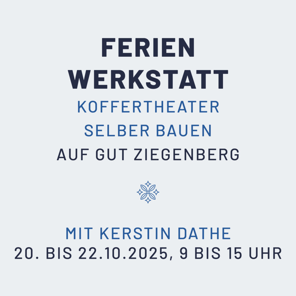 In den Herbstferien heißt es: Vorhang auf im Koffer! Gemeinsam bauen wir mit Theatermacherin Kerstin Dathe vom Baumhaus Friedrichsbrunn aus einem einfachen Koffer eine kleine Bühne voller Fantasie. Mit selbstgebastelten Figuren, Kulissen und Geschichten entsteht euer ganz eigenes Mini-Theaterstück – natürlich mit Premiere am Ende der Werkstatt. Ein kreatives Ferienabenteuer für alle, die Lust haben zu basteln, zu spielen und Geschichten lebendig werden zu lassen.