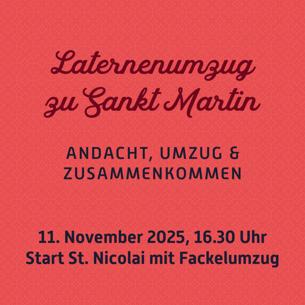 Die Kirchgemeinde Ballenstedt lädt am 11. November 2025 zum Laternenumzug zu Sankt Martin ein. Jedes Jahr im November findet mit dem Martinstag der Festtag des Heiligen Martin von Tours statt, der auch als Martini, Martinsfest oder Sankt Martin bekannt ist. Einer der bekanntesten Bräuche zum christlichen Martinstag ist der Martinszug, zu dem Kinder mit bunten Laternen durch die Straßen ziehen. Erwachsene tragen oft Martinsfackeln. Der Umzug starten um 16 Uhr mit einem kleinen Gottesdienst in der Kirche St. Nicolai. Das Martinsfeuer findet dann ab 17 Uhr in gemütlicher Runde auf dem Gut Ziegenberg statt. Für das Leibliche Wohl ist gesorgt.